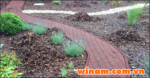 Lối đi sân vườn lát bằng Gạch cao su hình chữ I rất đẹp mắt